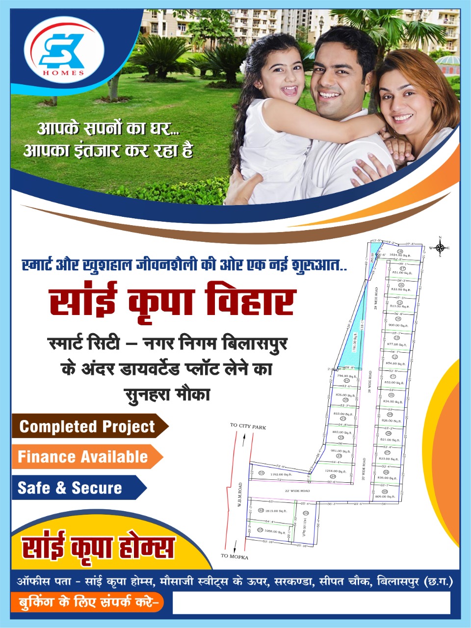 This project is fully developed and has been approved by NAGAR NIGAM BILASPUR. 90% of the plots and houses have been sold, and 80% of the residents have already moved in.